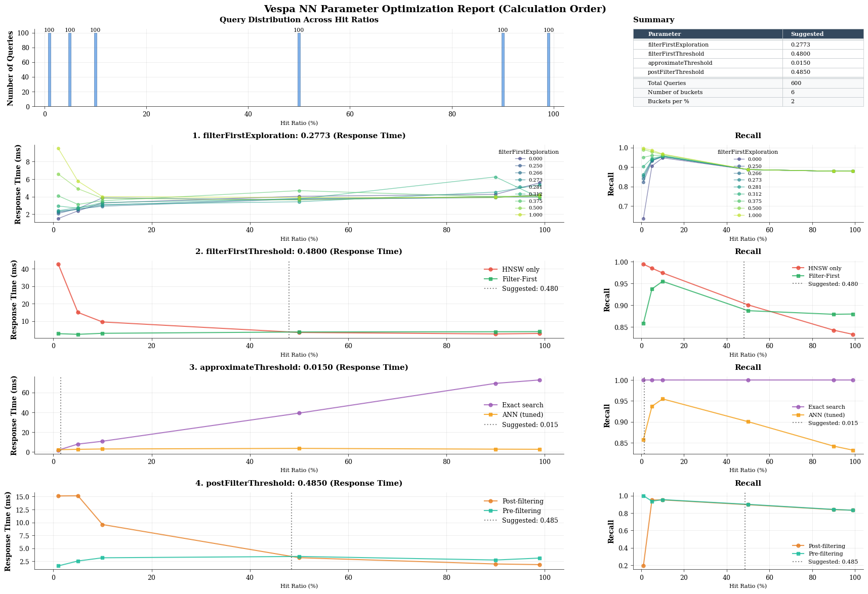 Tuning ANN is essential for balancing recall and latency, but doing it manually can be time-consuming and difficult. As a continuation of Vespa’s expansion of ANN tuning parameters, Vespa now includes a new ANN autotune tool in pyVespa that helps you quickly identify the optimal parameters for your workload. Try it out by opening the optimizer notebook.